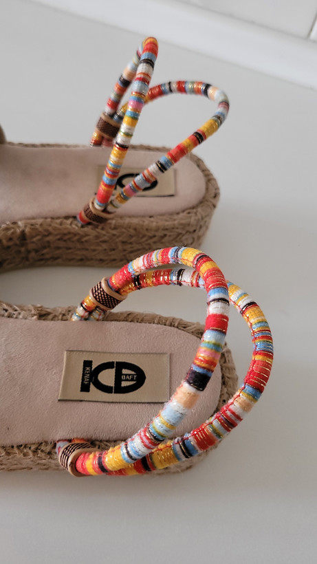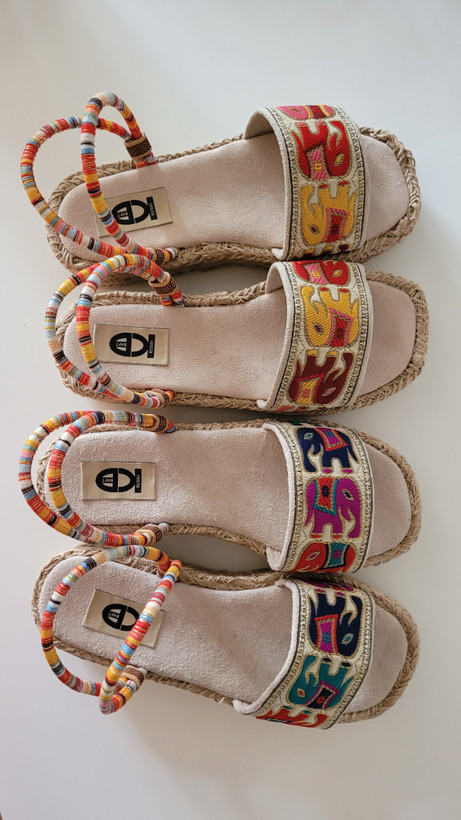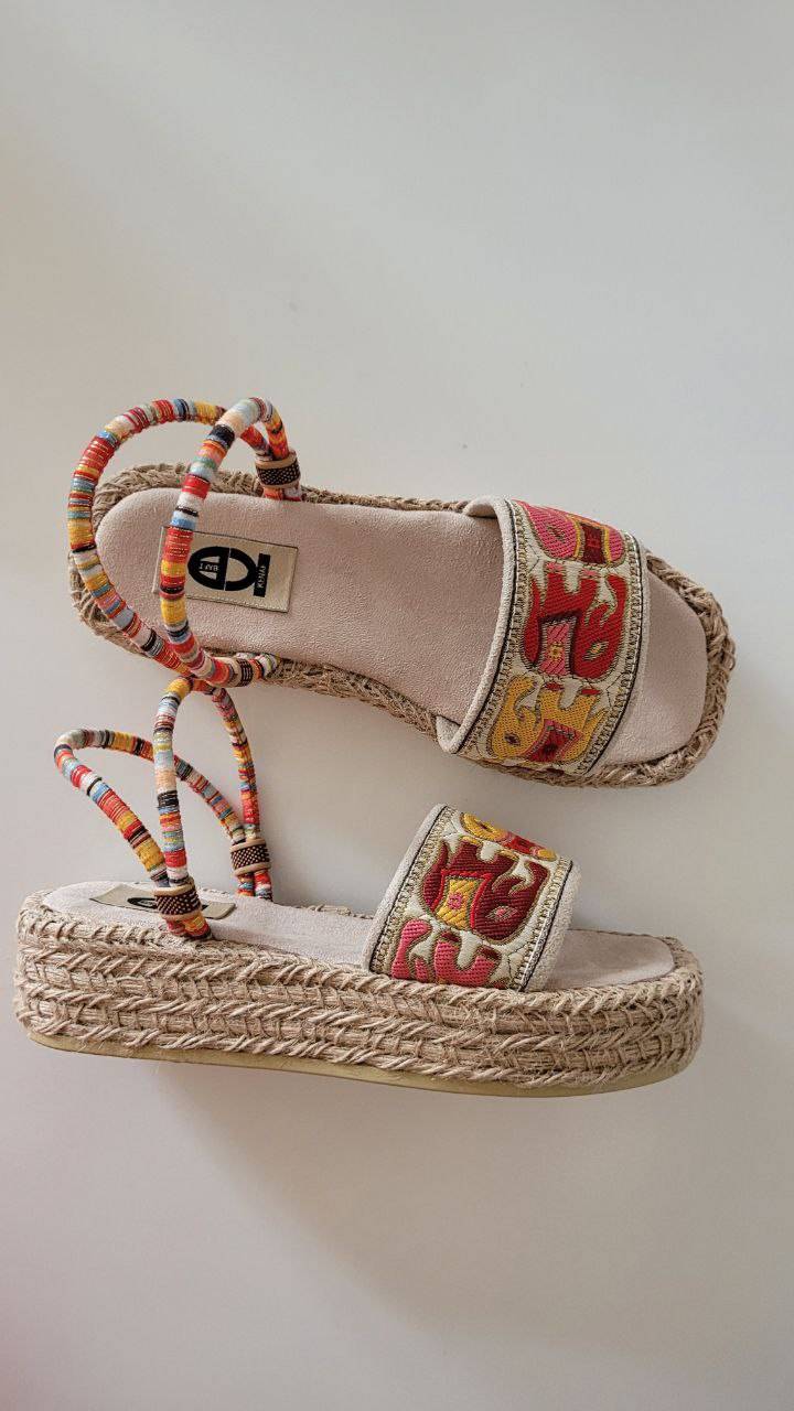 صندل سنتی سوزندوزی طرح فیل هندی زیره کنفی و پیو سبک بسیار نرم و راحت در پا دارای بند قابل تنظیم مناسب کافه گردی بومگردی ساحل و مسافرت و استایلهای تابستانی و سبک بوهو