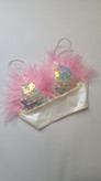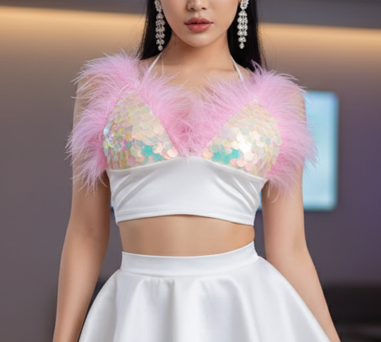 نیمتنه مجلسی پر و پولک دوزی شده جنس ساتن کشی پشت چند ردیف قزن قابل تنظیم دارد بسیار زیبا مناسب مهمانی و شب فری سایز ۳۶ ۳۸ ۴۰ ۴۲ داخل کاپ ظریف بند قابل تنظیم . با دامن یا شلوار سفید ست و استایل میشود