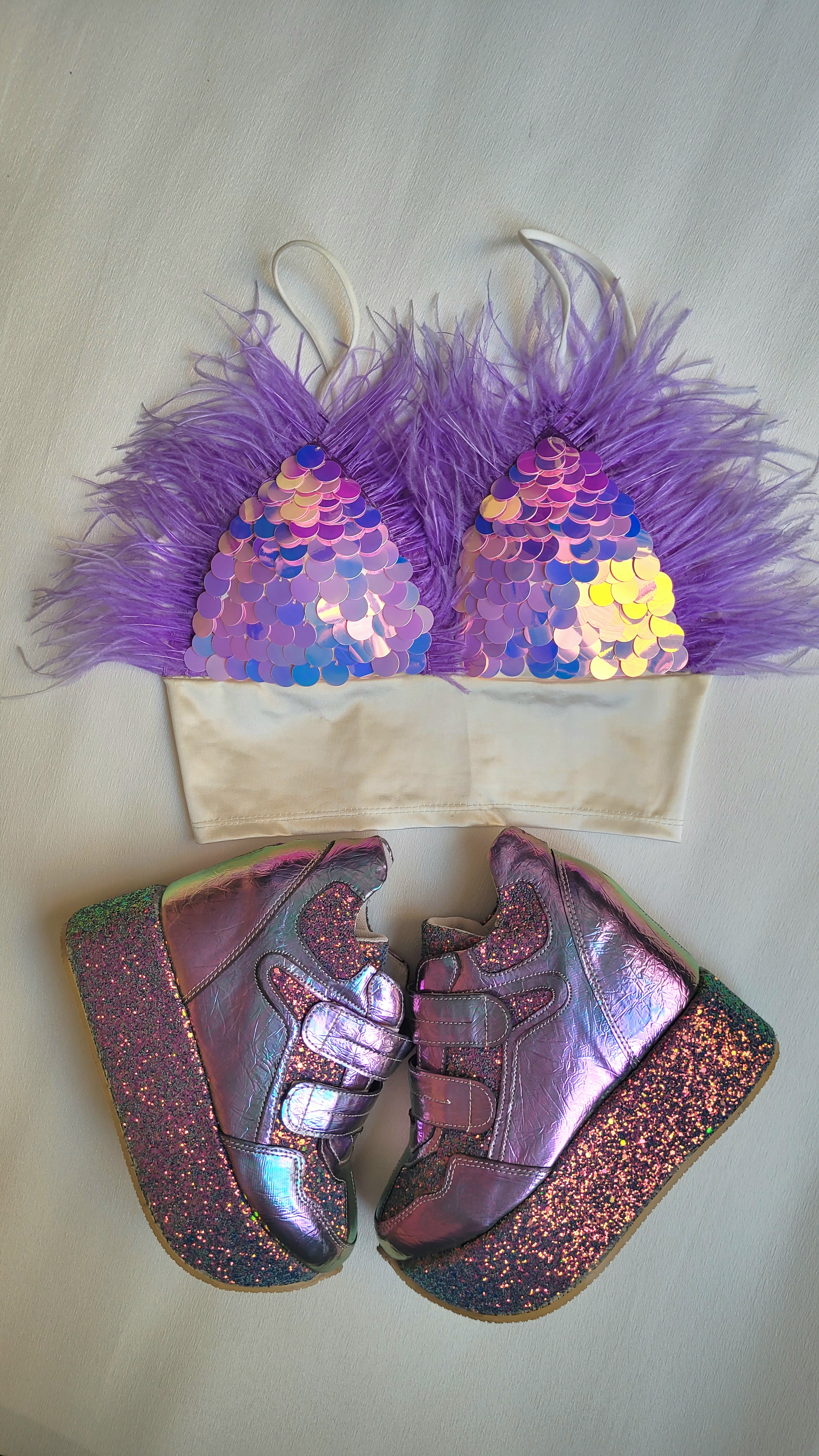 نیمتنه فانتزی مجلسی پولکی طرح یونی کورن مناسب سایز ۳۶ تا ۴۲ پشت چند ردیف قزندار و جنس ساتن کشی مناسب تولد مهمانی و قابل استایل با دامن و شلوار سفید