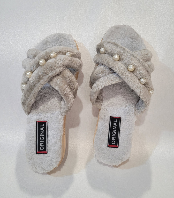 دمپایی راحتی روفرشی جنس تدی نرم و لطیف با زیره طبی پیو سبک مناسب استفاده در منزل . این مدل مرواریدی سفارشی و مستلزم ۲روز آماده سازی میباشد