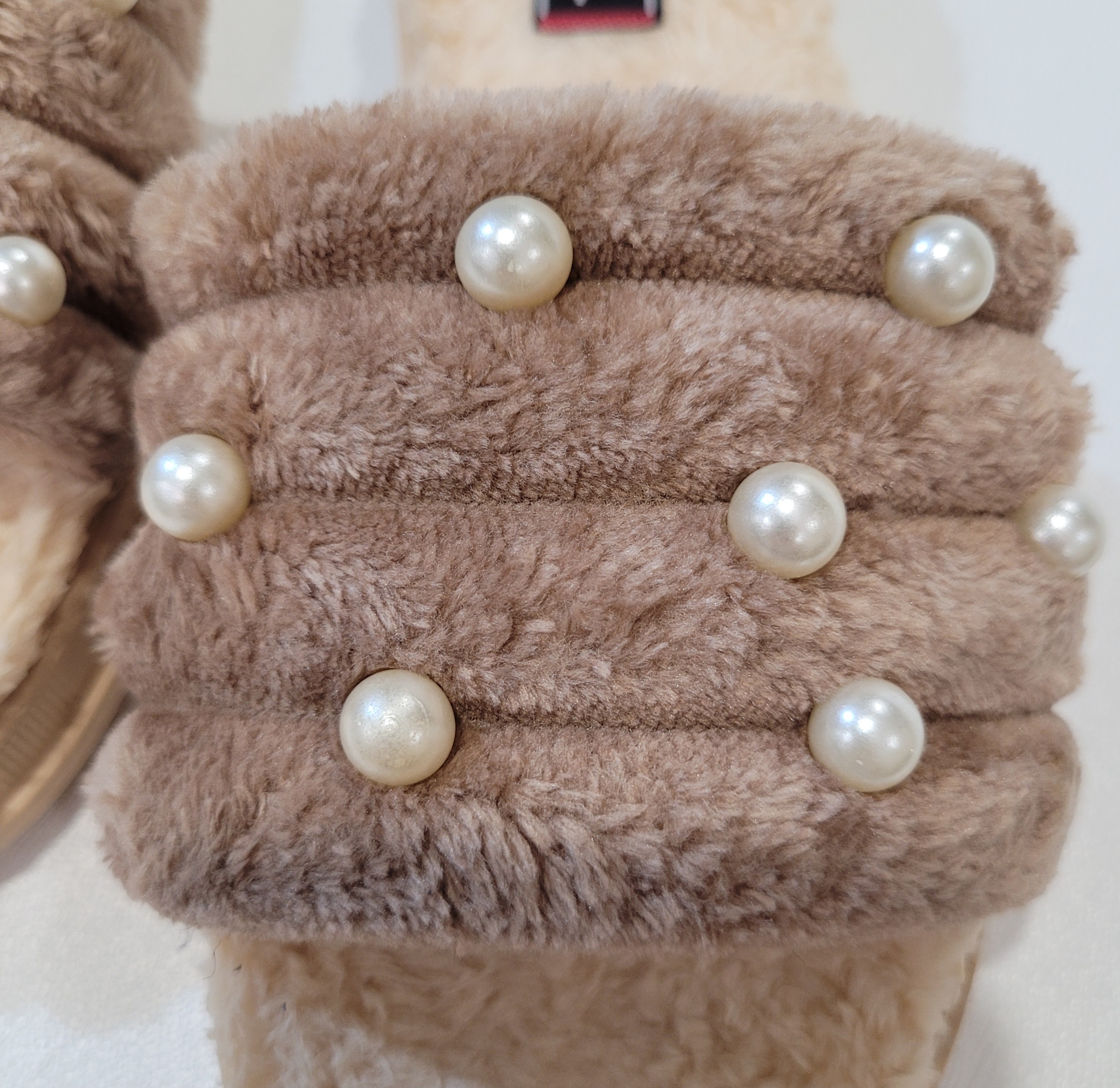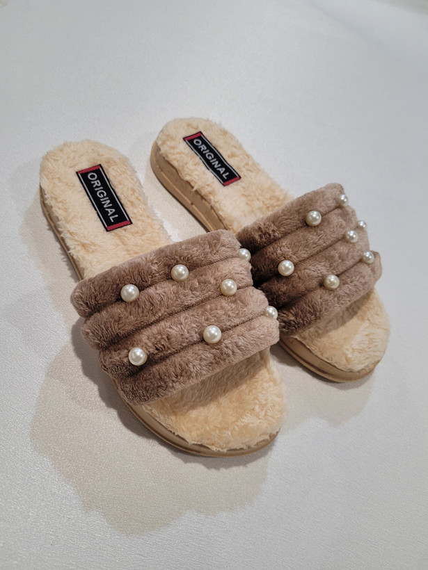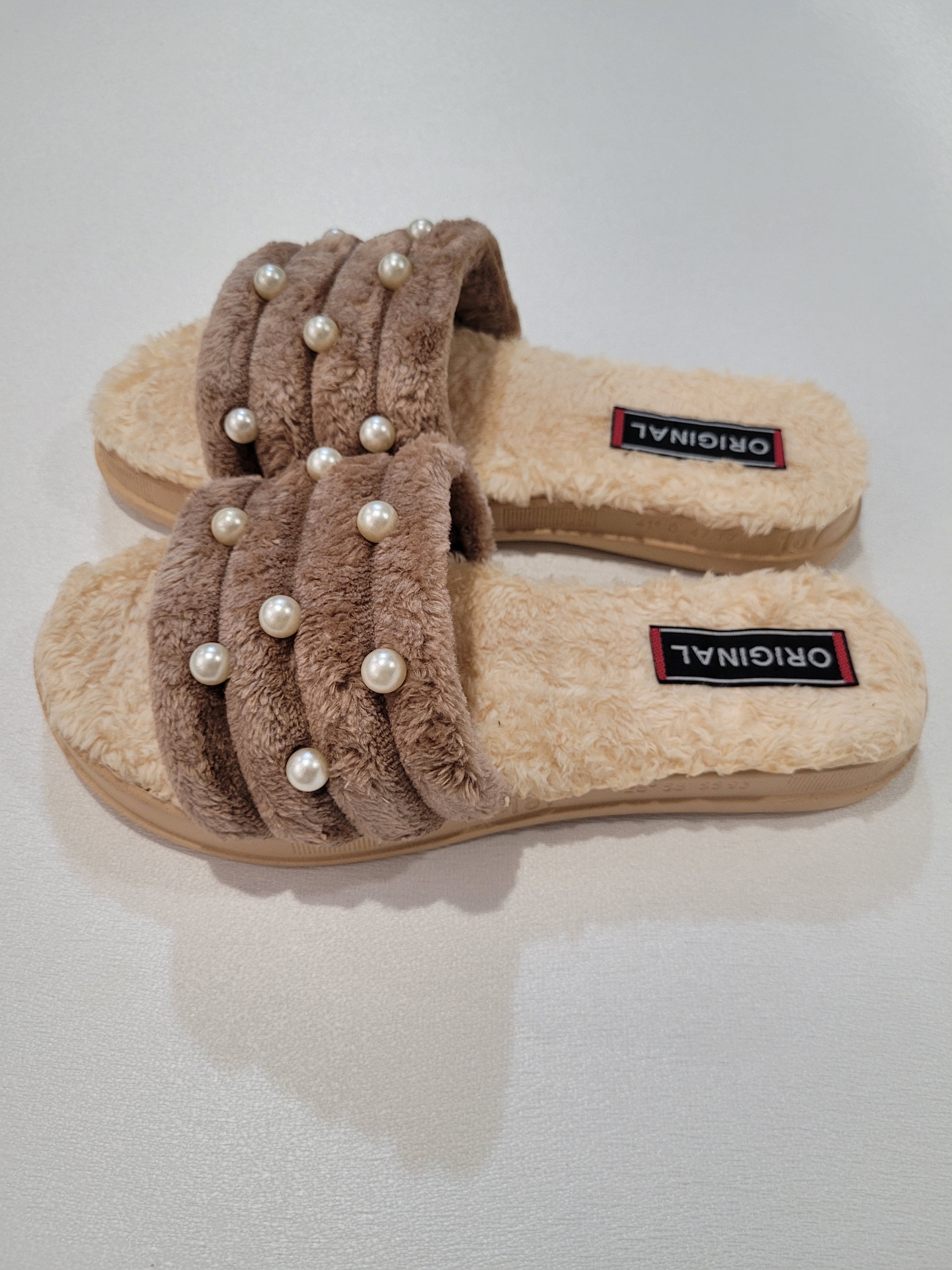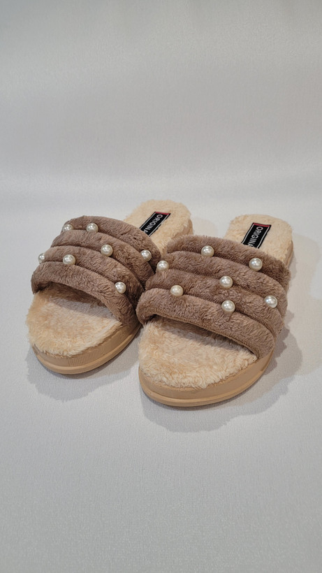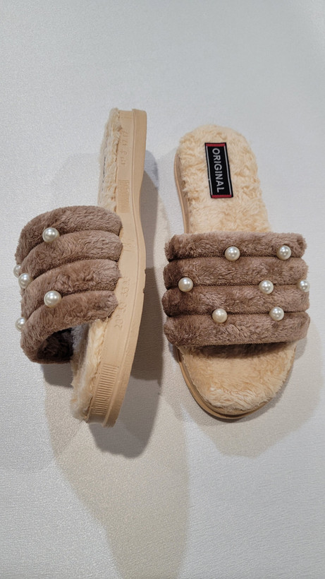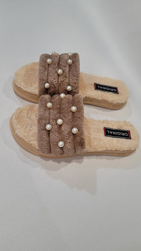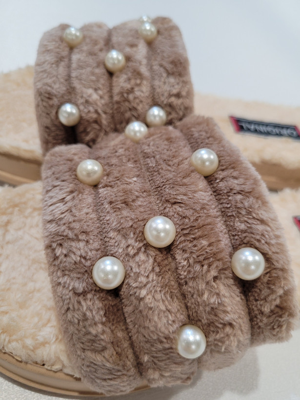 دمپایی روفرشی مرواریدی (پانچ شده) جنس تدی بسیار نرم و لطیف زیره پیو سبک و طبی مناسب استفاده روزمره در منزل