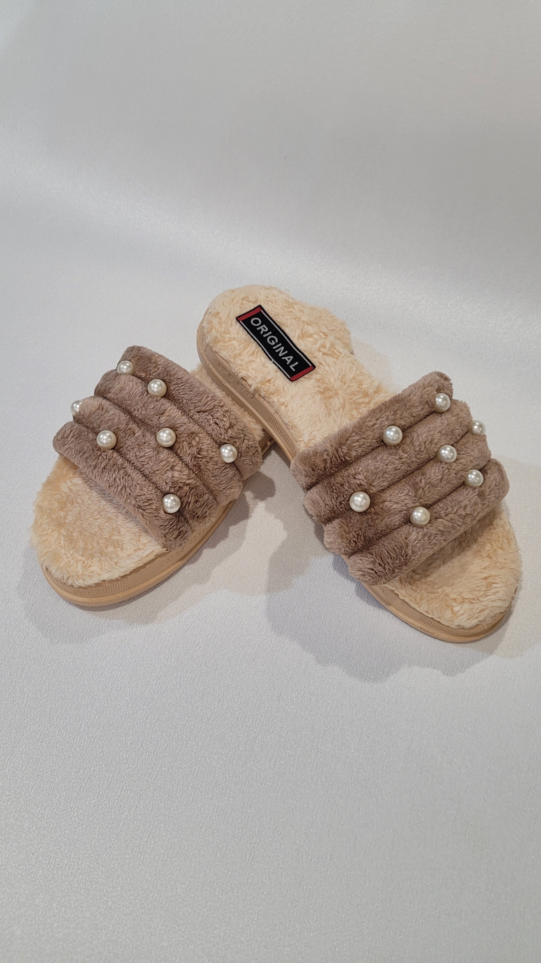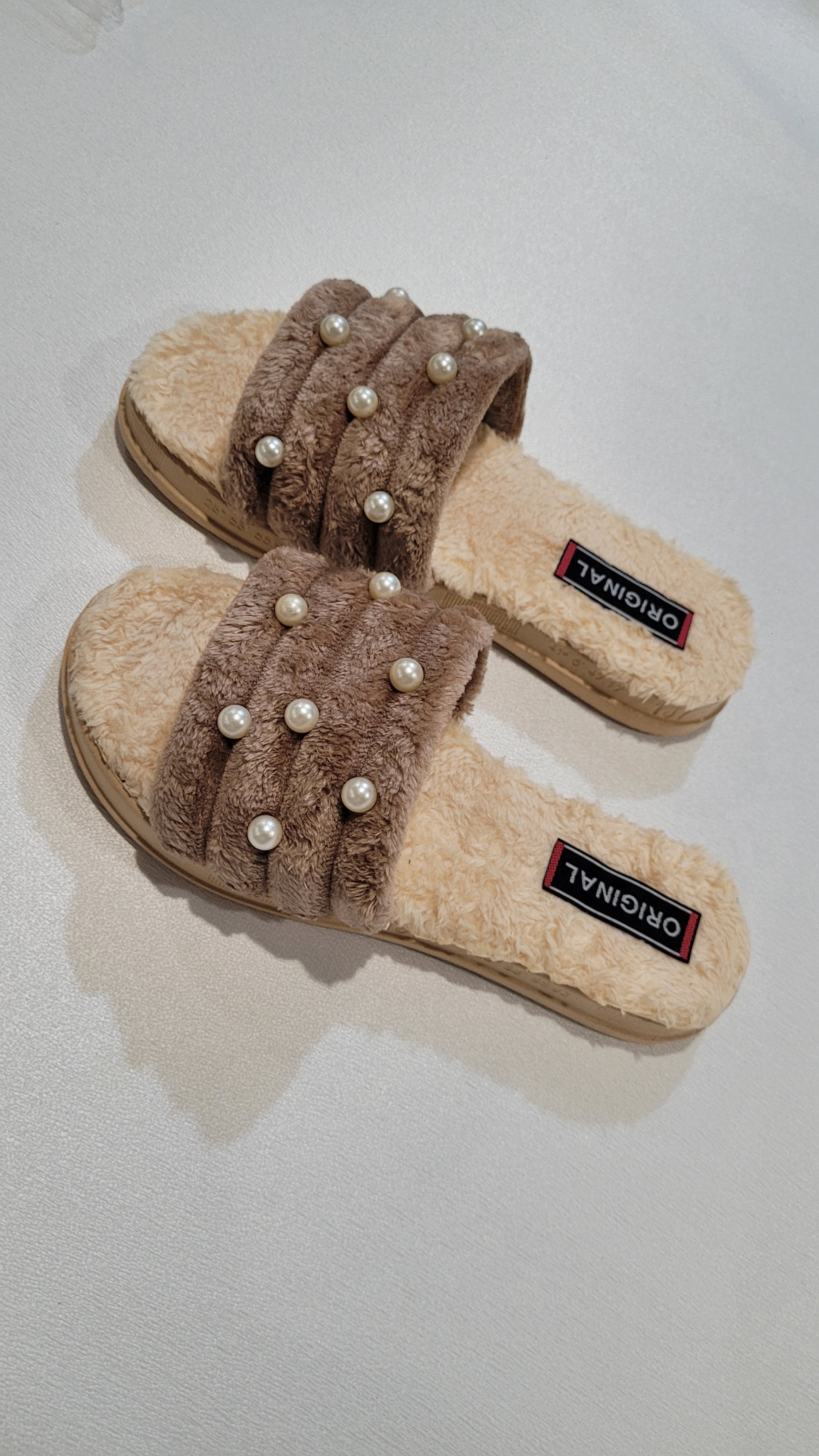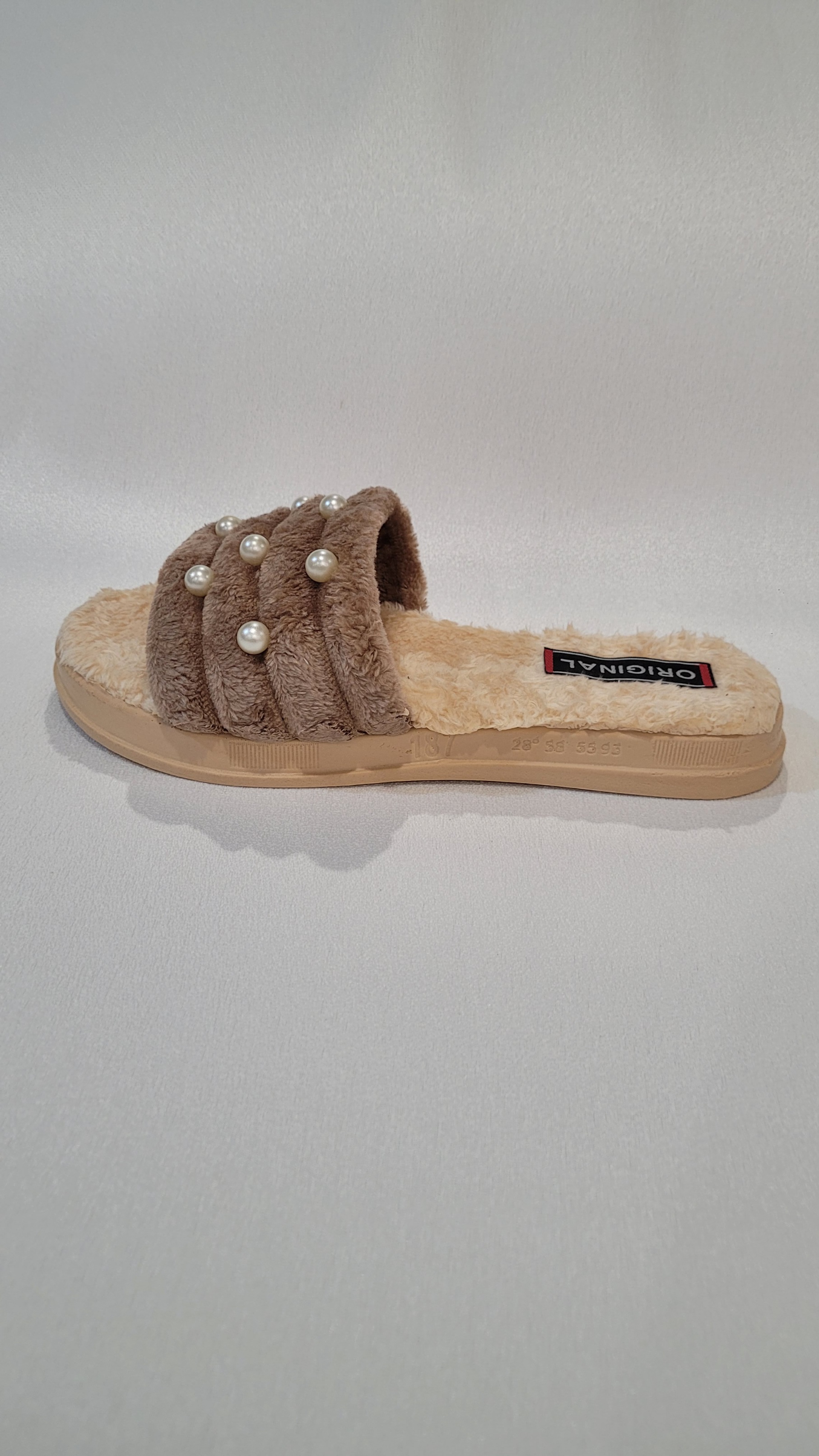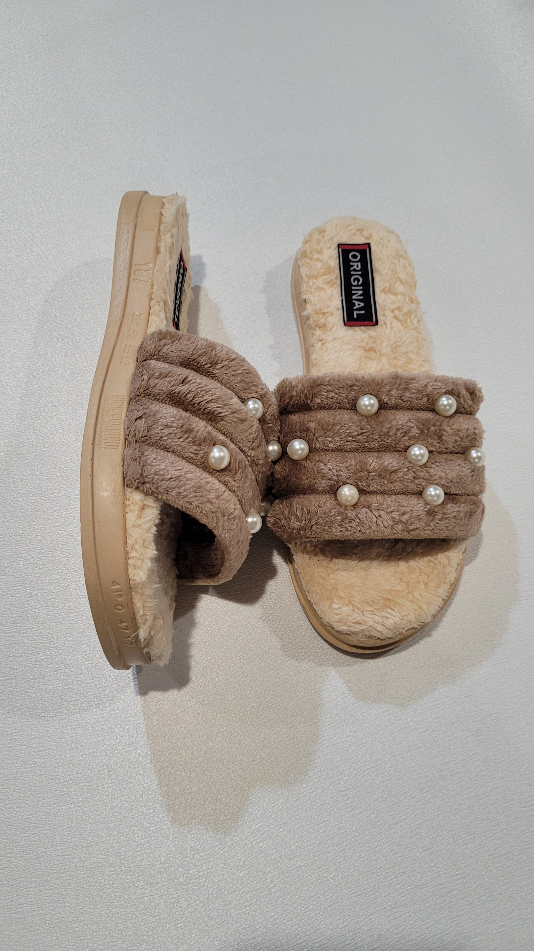 دمپایی روفرشی مرواریدی (پانچ شده) جنس تدی بسیار نرم و لطیف زیره پیو سبک و طبی مناسب استفاده روزمره در منزل