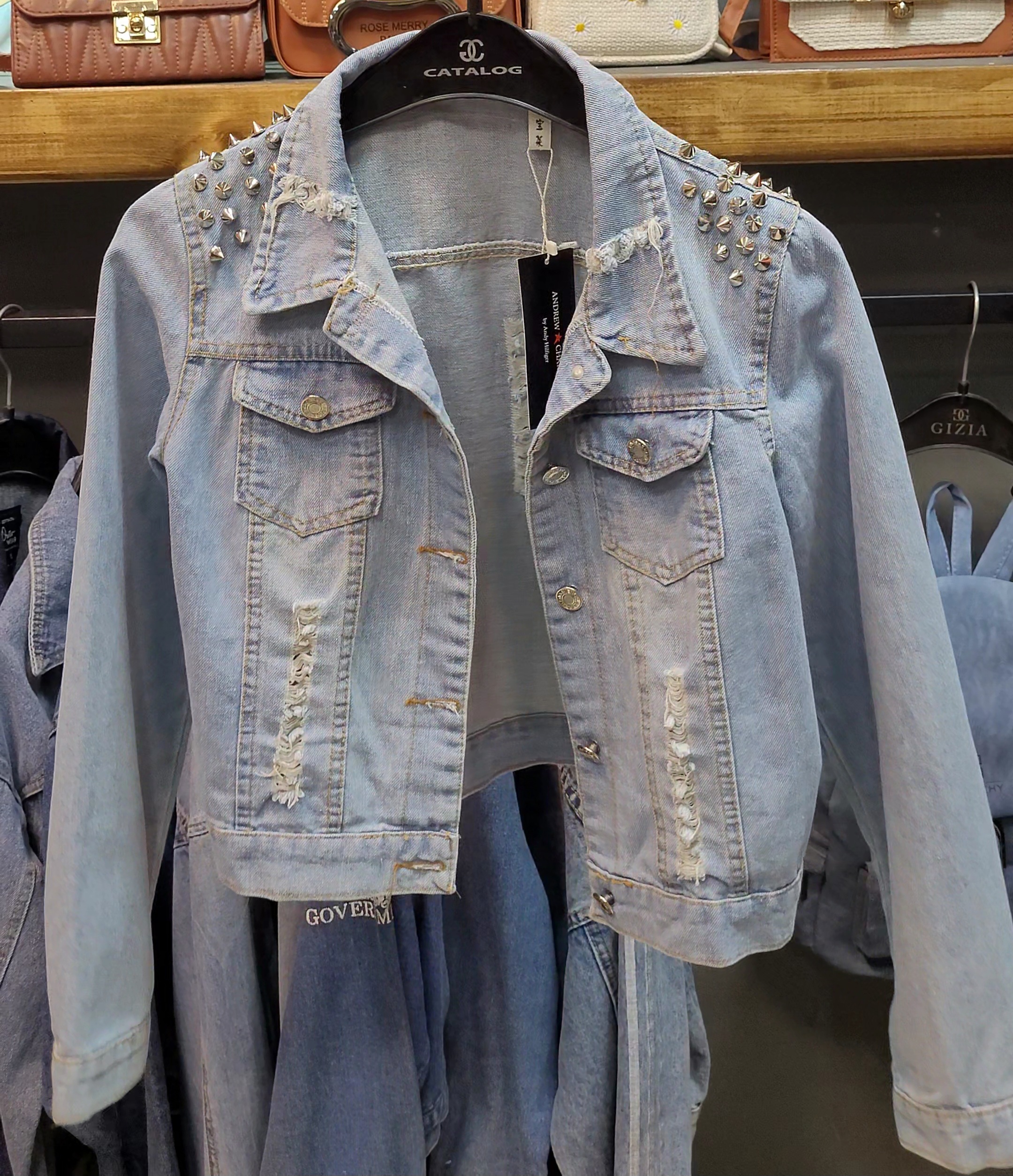 کت جین زاپدار سرشانه پرچ میخی مناسب ۳۴ ۳۶ و ۳۸ بسیار شیک و خوش تن