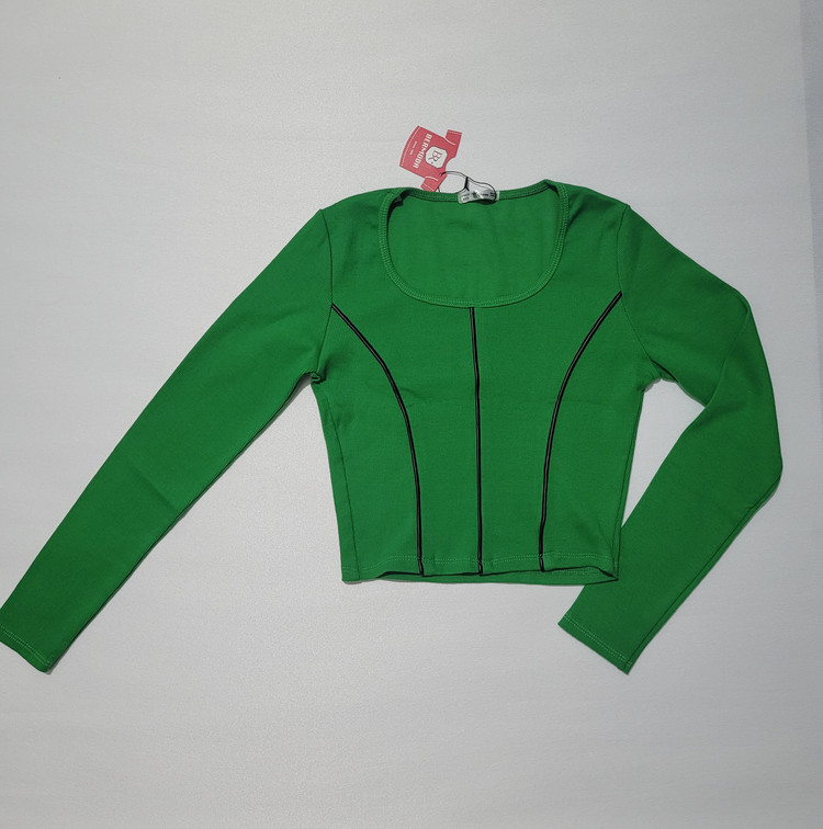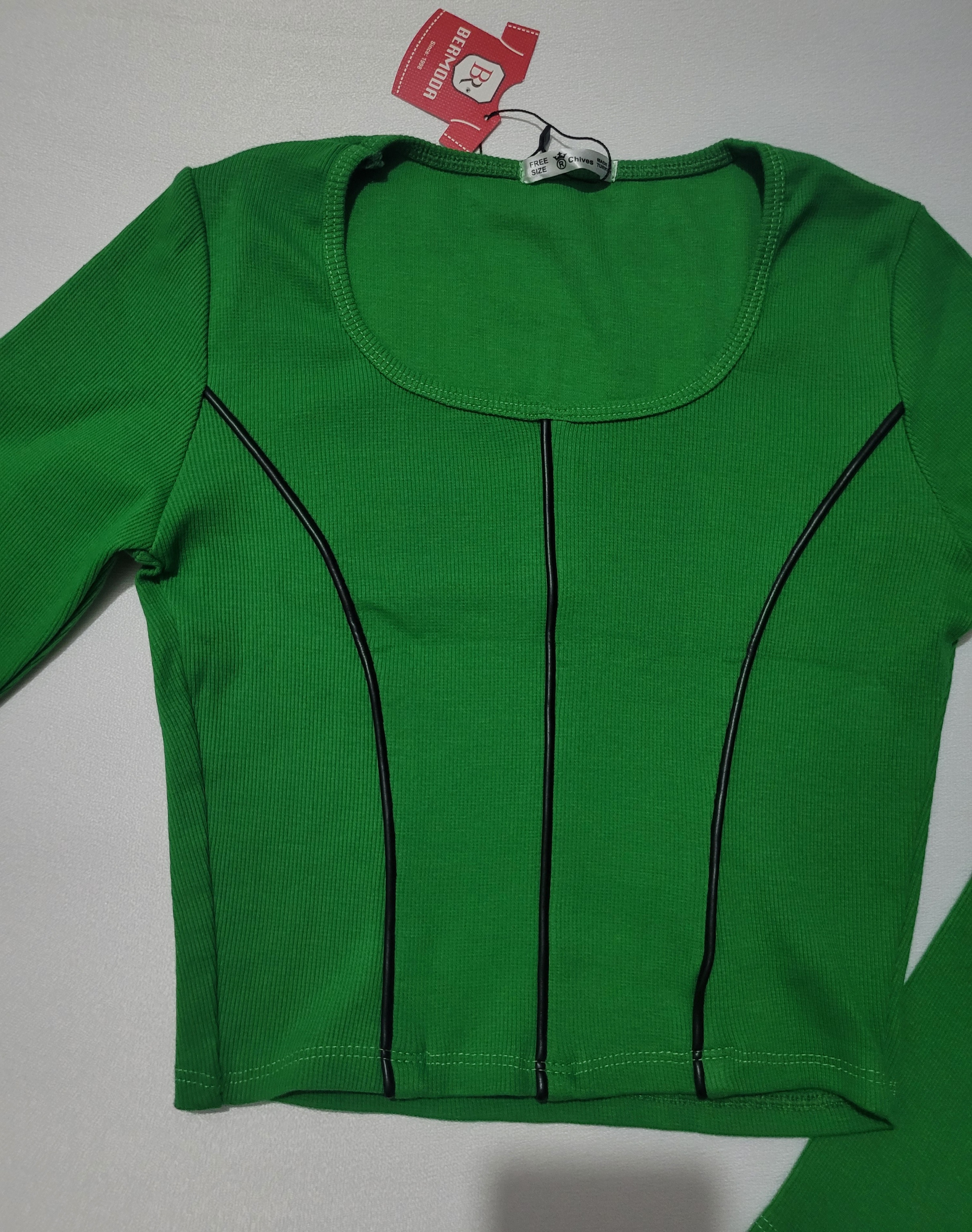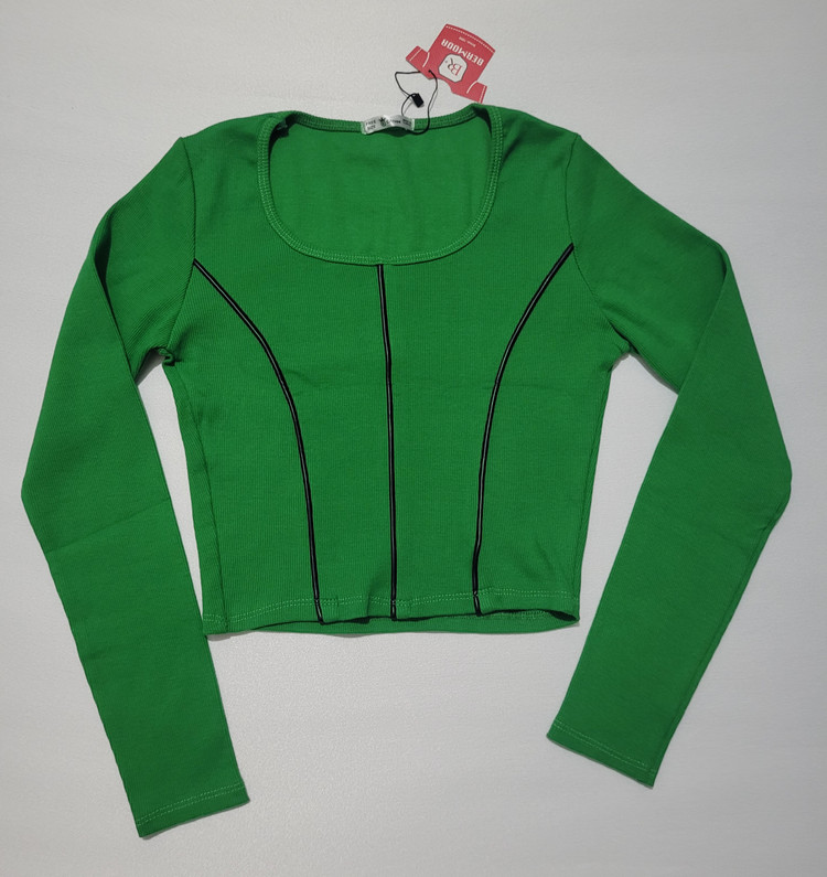 کراپ آستین بلند یقه خشتی جنس با کیفیت کبریتی ریز بسیار خوش تن و کشسانی مناسب از سایز ۳۴تا ۴۴